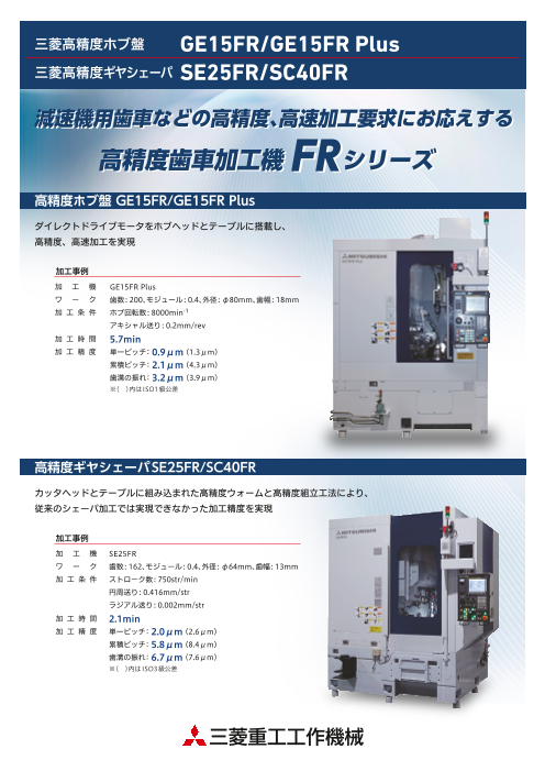 小モジュールを高精度に、かつ高能率(高速)で加工できるよう、ホブ盤ではダイレクトドライブ駆動方式と高い制御技術を、ギヤシェーパでは基幹部品の高精度化、また組立精度の厳格化をしたモデルです。