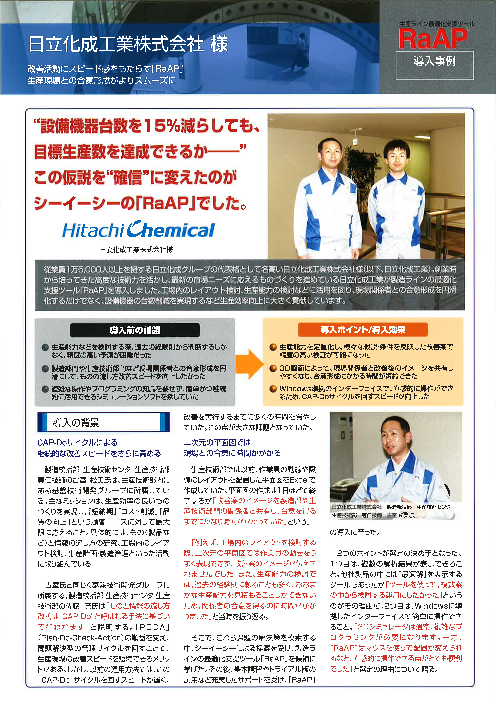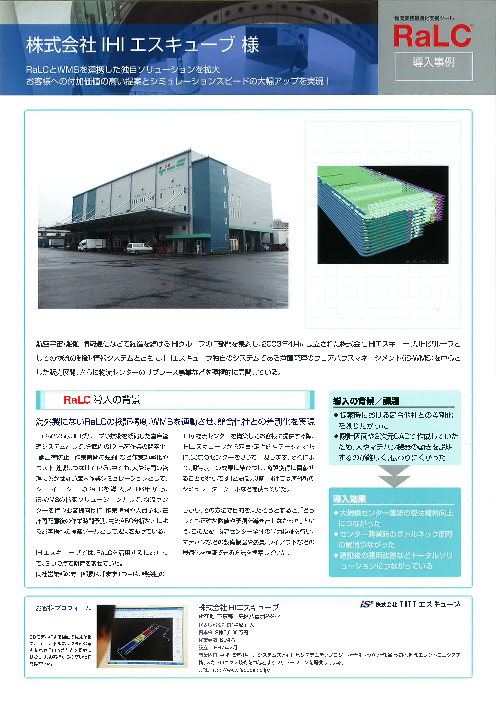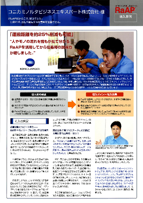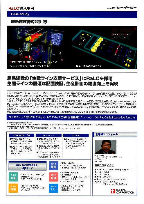 3D技術を駆使した表現力、シミュレーション技術を集約した分析・検証力により、人・設備・材料のバランス、生産能力・在庫の最適化を同時に実現。 ●特徴 ‐簡単なオペレーション操作 ‐3Dでリアルな製造現場を再現 ‐高度なシミュレーション分析機能