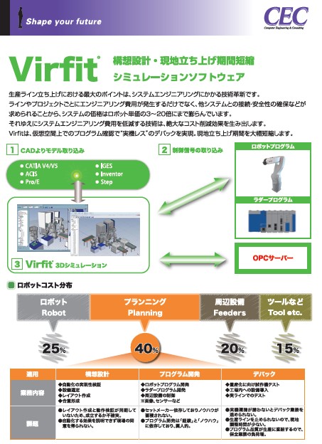 ロボット・各種装置の動作確認・検証ツールです。 ●特徴 ‐実機が揃わなくても、モーション確認と成立性検証が可能 ‐現地立上までの期間を大幅短縮