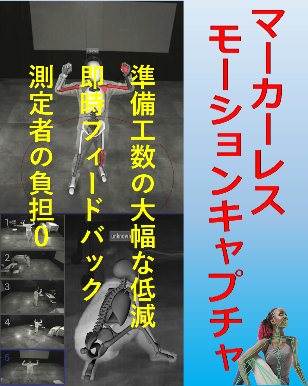 【システムの特徴】 ・リアルタイムにマーカーレスでモーションキャプチャが可能なシステム ・複数台のカメラから骨格認識を行うことで、3次元的なトラッキングを実現 ・計測範囲内に入るだけで即座にスケルトンを認識して計測がはじめられ、また、マーカーの装着...