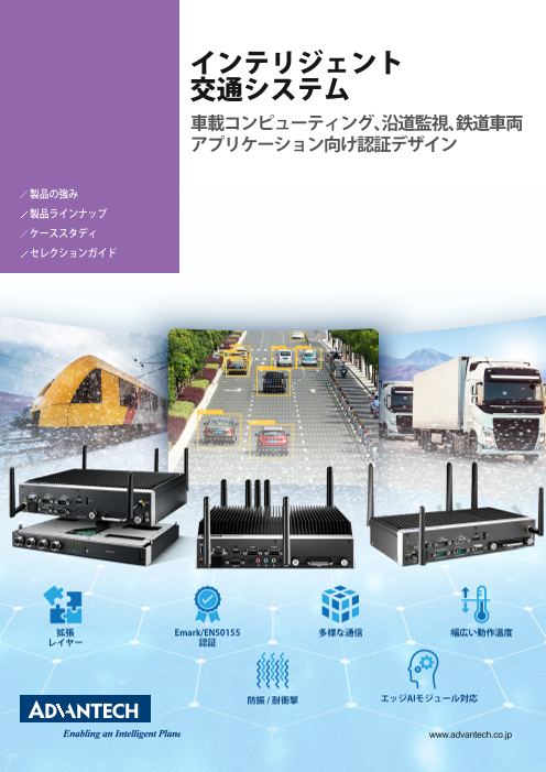 アドバンテックは、車載・鉄道車両関係の沿道監視用ファンレスシステムを運輸業界用途に特化したデザインで提供します。当社製品は車載/鉄道関連の認証(EMark/EN50155)、通信インターフェースの種類に応じた高い拡張能力、高耐久で幅広い動作温度設計を特長...