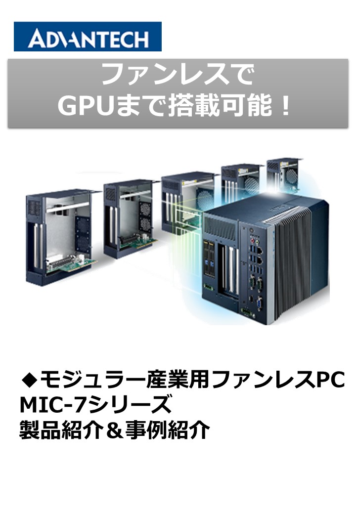 アドバンテックのファンレス産業用IoT エッジコンピュータのMIC-7シリーズは、PCI/PCIexpressの拡張スロット部分を取り外して、使用用途に合わせてカスタマイズ可能な、非常にユニークな産業用PCです。ファンレスの為、幅広い動作温度範囲にも対応...
