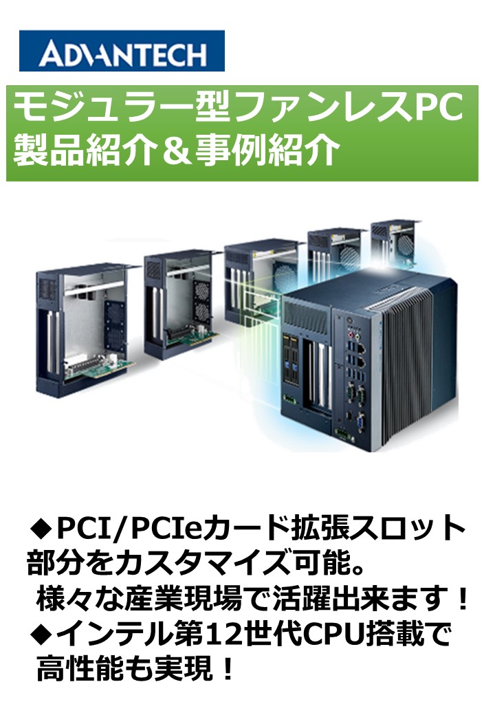 アドバンテックのファンレス産業用IoT エッジコンピュータのMIC-7シリーズは、PCI/PCIexpressの拡張スロット部分を取り外して、使用用途に合わせてカスタマイズ可能な、非常にユニークな産業用PCです。ファンレスの為、幅広い動作温度範囲にも対応...