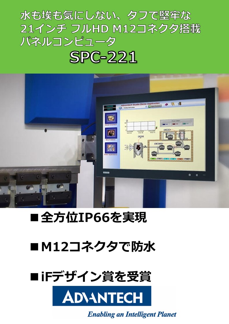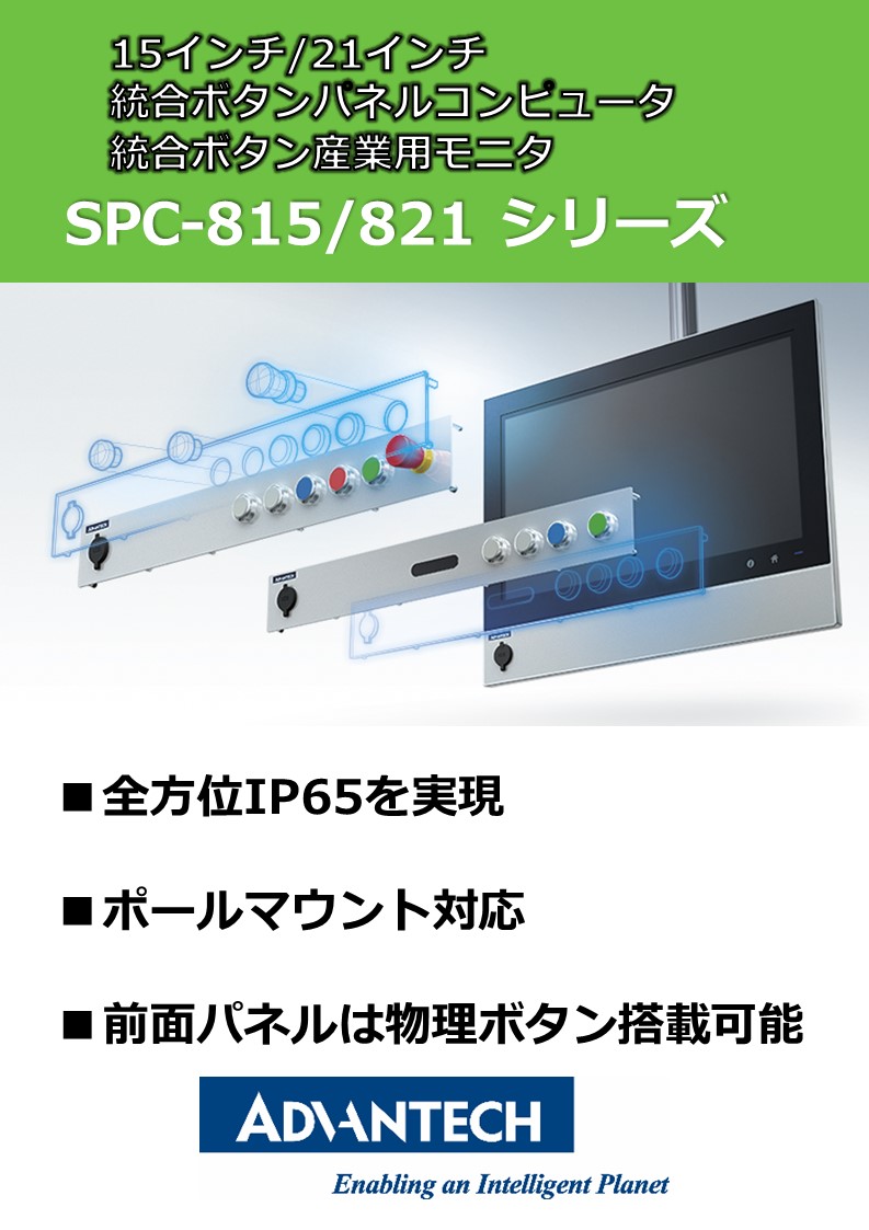 アドバンテックのSPC 800 HMI シリーズは、厳しい環境の工場現場において、従来は制御盤に格納が必要であったパネルモニター/パソコンを、ポールマウントなどによる直接マウントを可能にする為、全方位IP 65 相当の防水・防塵性能を備え、かつ押しボタ...