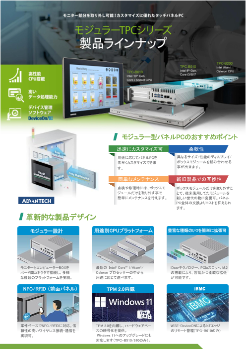 アドバンテックのAMAX-5000シリーズは、拡張可能な組み込みオートメーションシステムで、 IT&OTの橋渡しをPLC同等のサイズで高速に実現します。 【主な特徴】 ・DINレール準拠のコンパクトな筐体のCPUモジュールには、Intel i7...