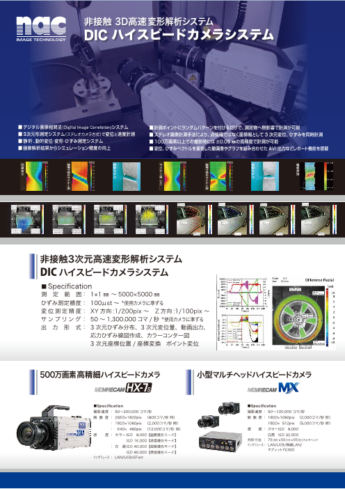 ■ デジタル画像相関法(Digital Image Correlation)システム ■ 三次元形測定システム(ステレオカメラ方式)で変位と速度計測 ■ 静的 、動的変位・変形・ひずみ測定システム ■ 画像解析結果からシミュレーション精度の向上 ...