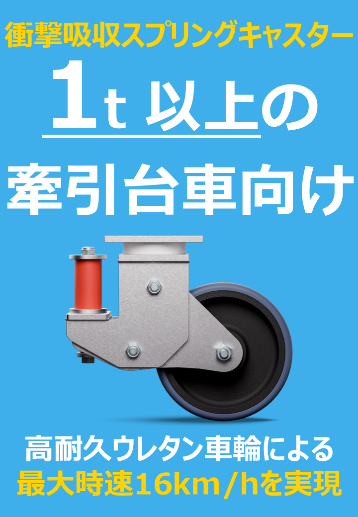 【超重量牽引対応】 1tを超える超重量物牽引台車でも使用可能。 【高速牽引対応】 最大時速16km/hの牽引走行耐久を実証。 スプリングを搭載しているので凹凸路面走行時による衝撃から積載物を守ります。 【新車輪Ultratech採用】 高速度...