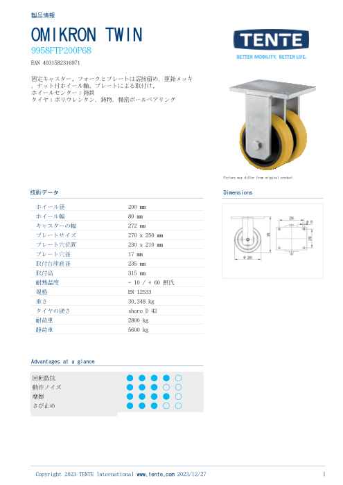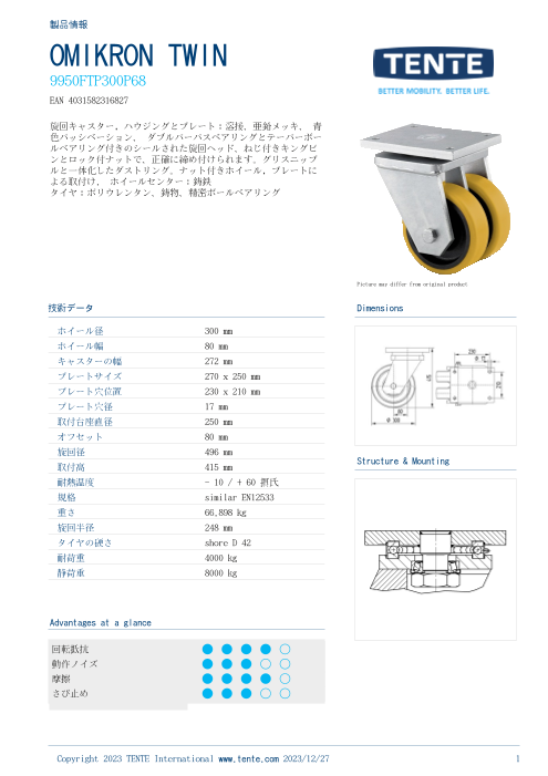 テンテ社だからできる丈夫で高性能な車輪