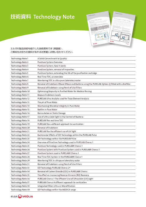 ◆「PureLabWaterGuide」 純水を使用する人や純水について詳しく知りたい人向けのガイドブックです。科学および医学分野における純水精製の要件、技術、アプリケーションの概要を説明しています。 ◆様々な飲料水とその中に含まれる...
