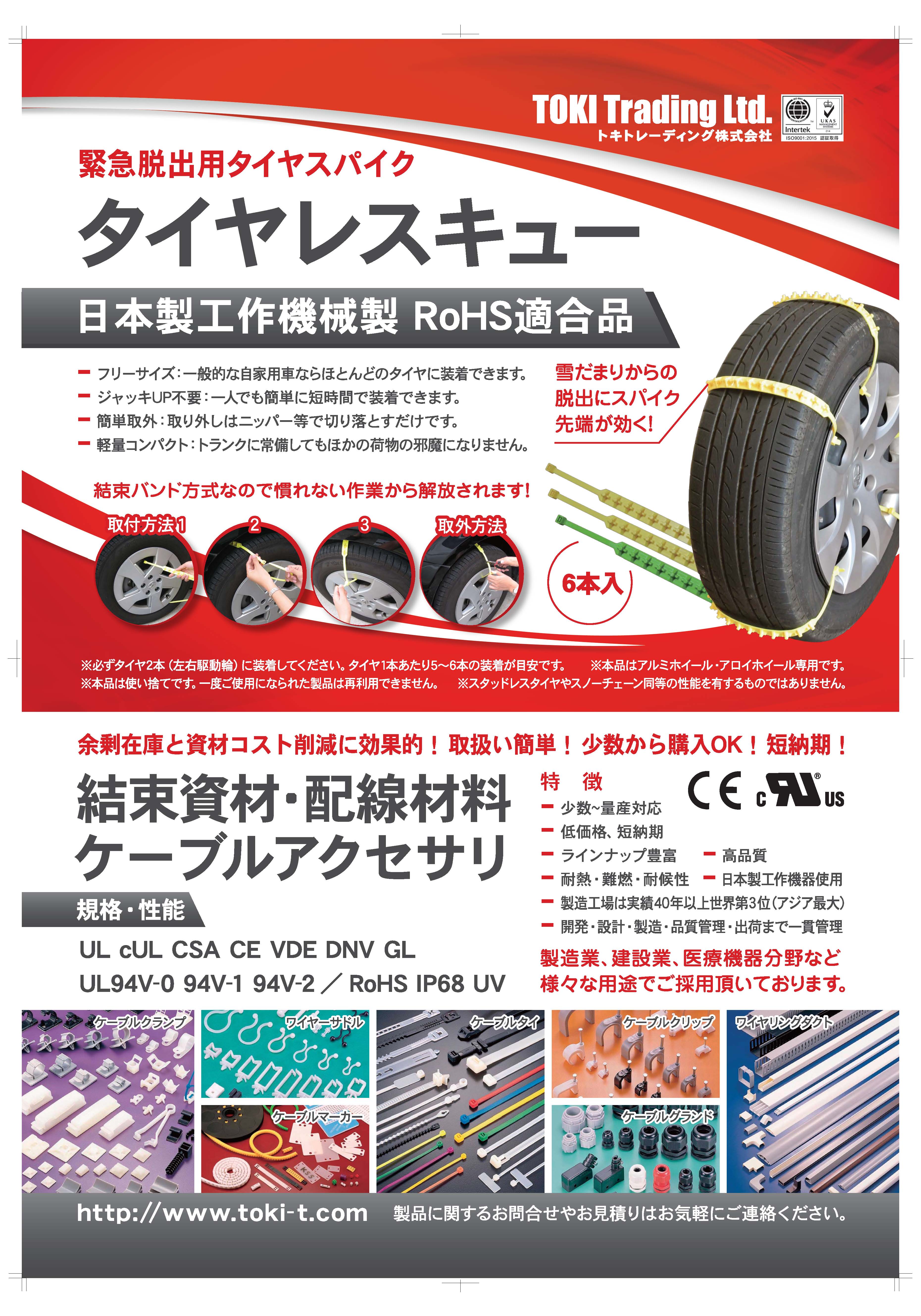【特徴】 〇フリーサイズ:一般的な自家用車ならほとんどのタイヤに装着可能 〇ジャッキUP不要:一人でも簡単に短時間で装着 〇簡単取外 〇軽量・コンパクト