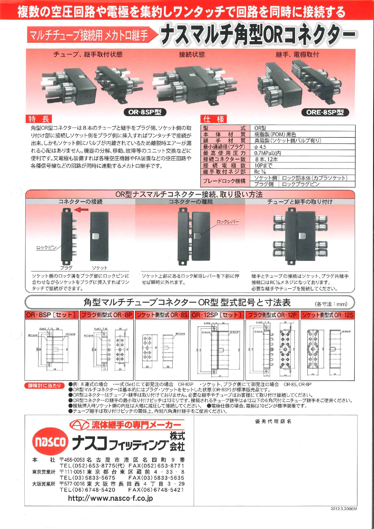 ・マルチチューブ接続用 メカトロ継手 ナスマルチ角型ORコネクター 複数の空圧回路や電極を集約しワンタッチで回路を同時に接続します。 ・マルチチューブ接続用 カップリング ナスマルチ丸型MRコネクター 複数の空圧回路を集約しワンタッチカップラー...