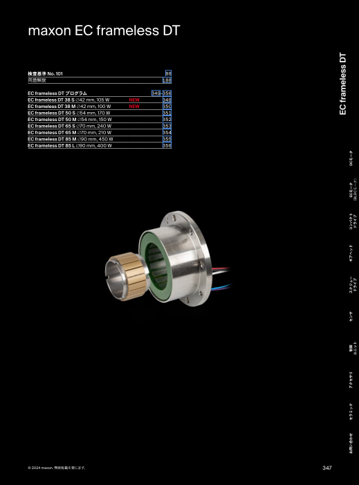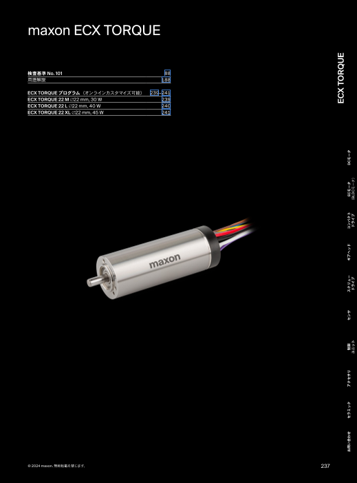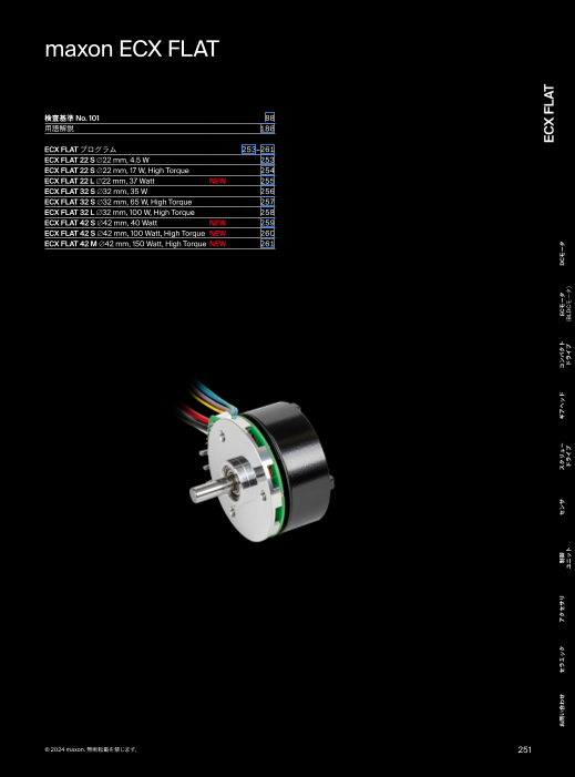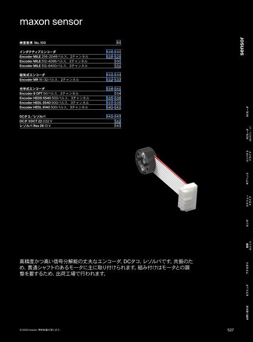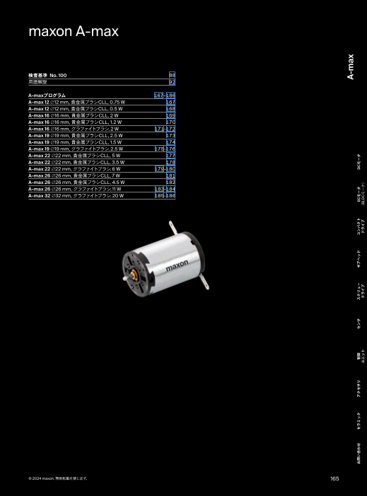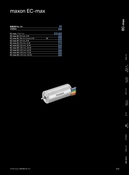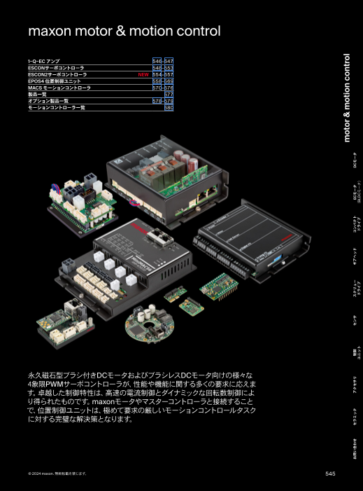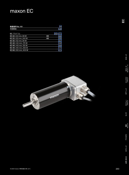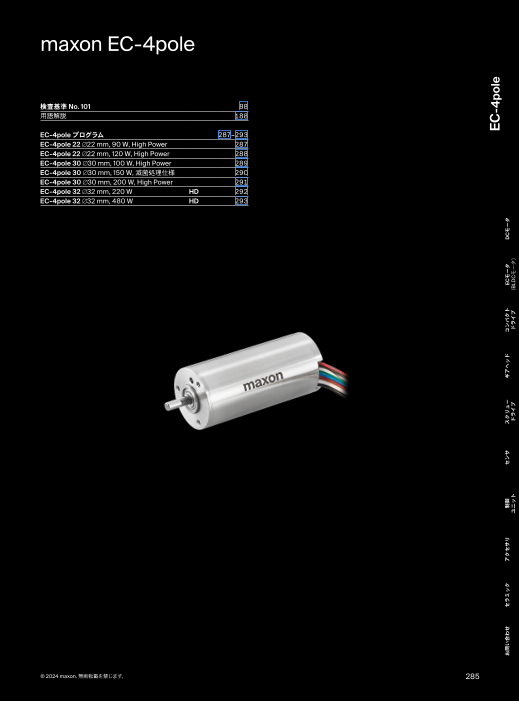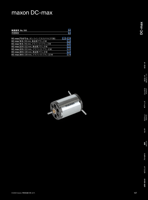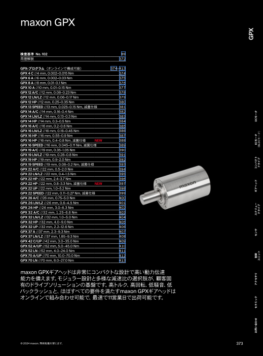 maxonの全製品ラインナップを網羅したカタログです。 maxon製品の構造やテクノロジーについての要点を簡潔に説明したページも掲載しています。