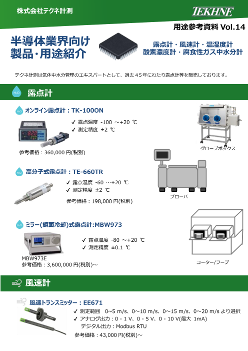テクネ計測は気体中水分管理のエキスパートとして、過去45年にわたり露点計等を販売して...