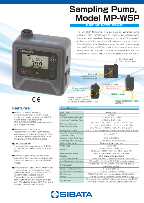 ◆ミニポンプMP-ΣNIIシリーズ 定流量機能を内蔵したエアサンプリング用ポンプです。流量範囲別にベーシックタイプのMP-Σ30NII型/MP-Σ300NII型/MP-Σ500NII型と高圧損タイプのMP-Σ100HNII型と4種...