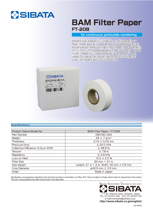 当フィルターは圧力損失と湿度影響について、作業環境測定における使用方法を考慮した特性となっています。 ◆ろ過材(フィルター)の条件 PTFEバインダーフィルターTF98φ110 作業環境測定基準第1条第5号における条件の1つとして0.3μm...