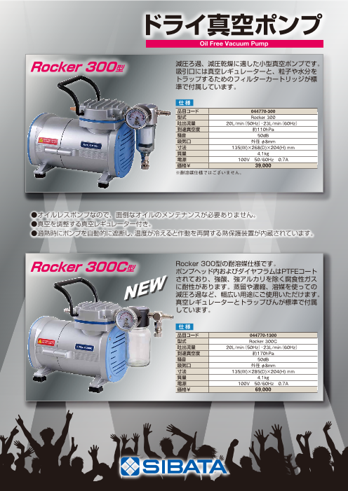 真空を調整する真空レギュレーター付き。 過熱時にポンプを自動的に遮断し、温度が冷えると作動を再開する熱保護装置が内蔵されています。 ◆Rocker 300型 減圧ろ過、減圧乾燥に適した小型真空ポンプです。吸引口には真空レギュレーターと、粒子や水...