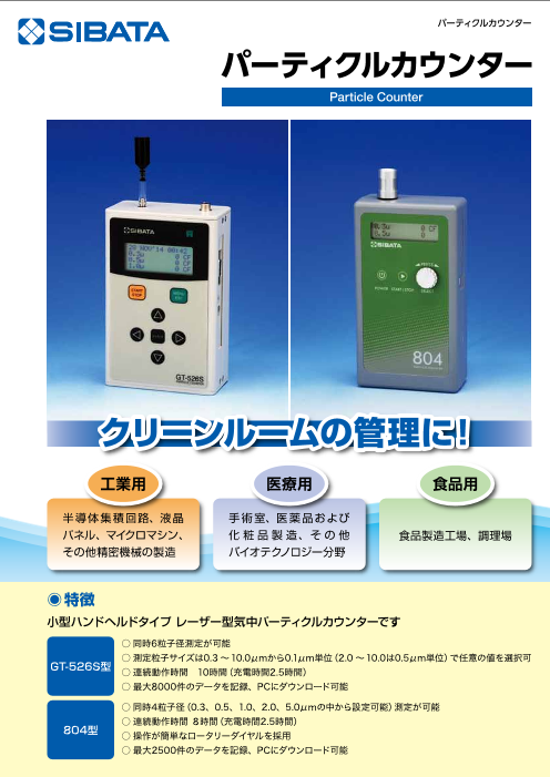◆ GT-526S型 ・同時6粒子径測定が可能 ・測定粒子サイズは0.3 ~ 10.0μmから0.1μm単位(2.0 ~ 10.0は0.5μm単位)で任意の値を選択可 ・連続動作時間 10時間(充電時間2.5時間) ・最大8000件のデ...