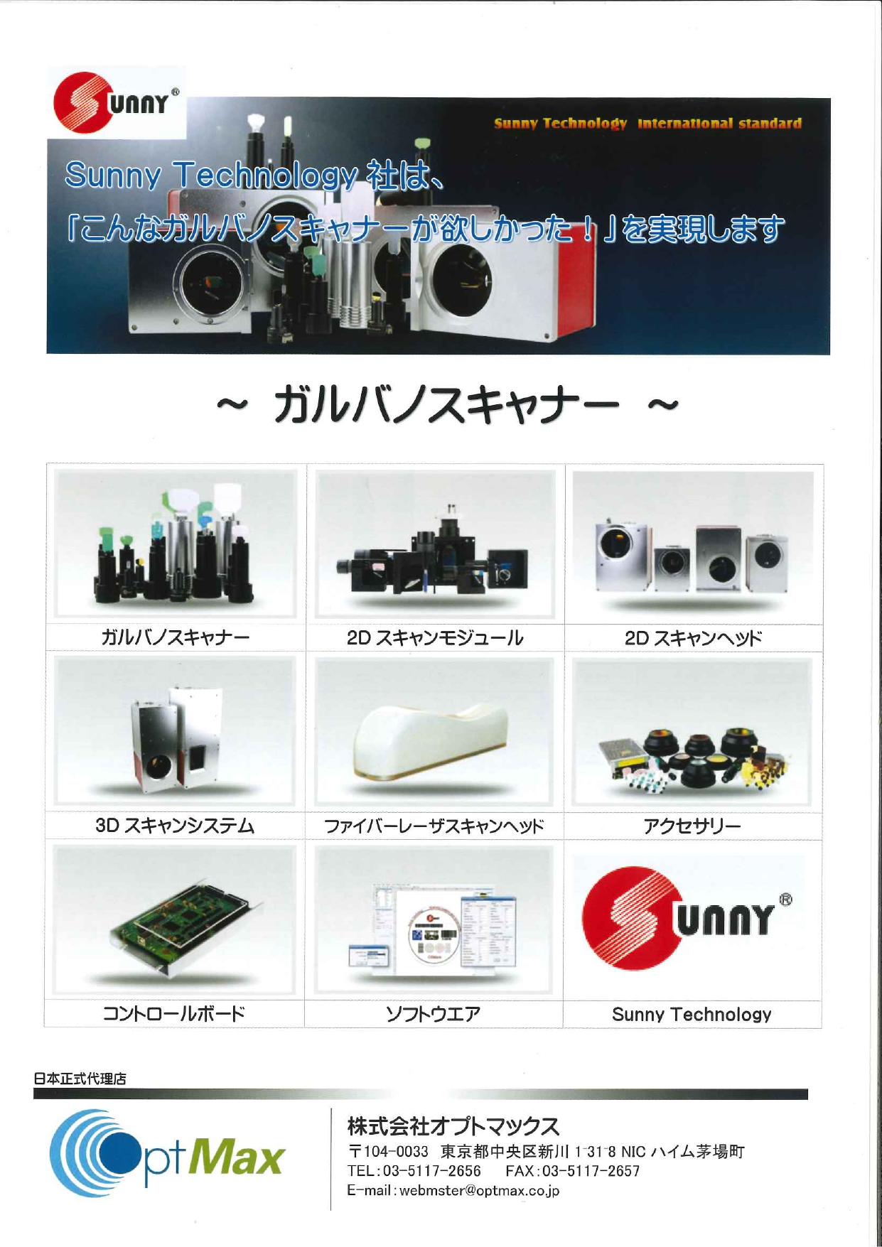【掲載製品】 ○ガルバノスキャナー ○2Dスキャンモジュール ○2Dスキャンヘッド ○3Dスキャンシステム ○ファイバーレーザスキャンヘッド ○アクセサリー