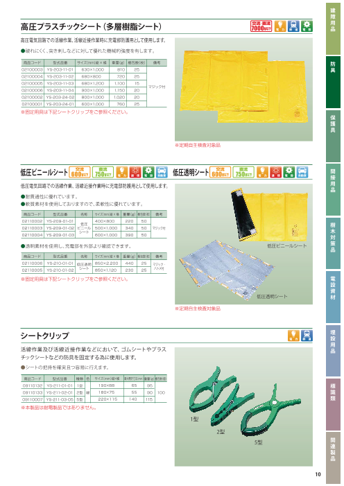 ◆高圧プラスチックシート ◆低圧ビニールシート ◆低圧透明シート ◆シートクリップ ◆分岐カバー ◆トランスシートI型・II型 ◆引留カバー ◆絶廻りシート ◆端末リード線キャップ ◆絶縁ゴム管 など多数掲載 ◆詳細はカタログをダ...