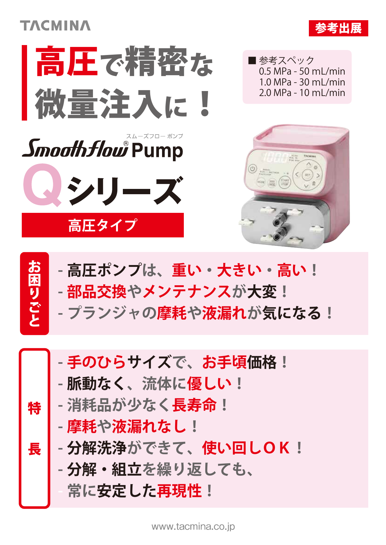 【特長】 長期運転でも精度が変わらない安定性 液漏れやコンタミのないクリーン性 流路が詰まっても破損しない安全性 分解や洗浄がしやすいメンテナンス性