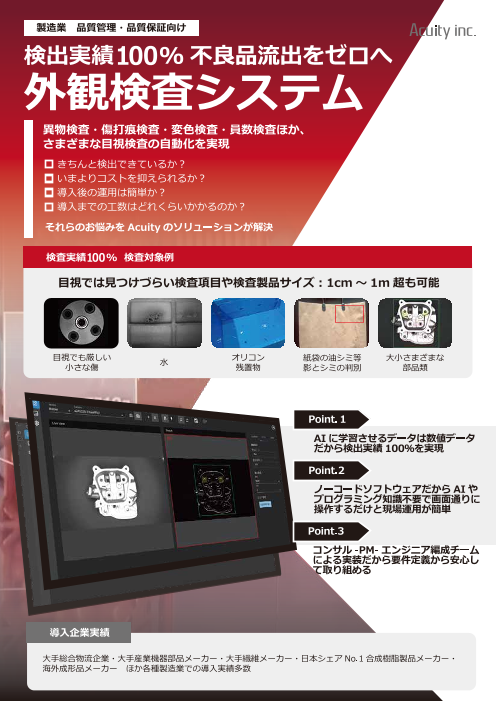画像処理のプロフェッショナルAcuityだからできる、AI外観検査の事例集。製造業の...