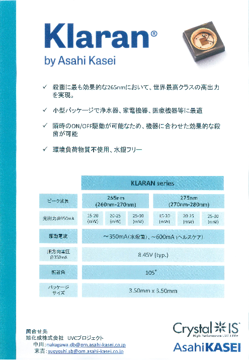 ・殺菌に最も効果的な265nmにおいて、世界最高クラスの高出力を実現 ・瞬時のON/OFF駆動が可能なため、機器に合わせた効果的な殺菌が可能 ◆詳細はカタログをダウンロードしてご覧下さい。