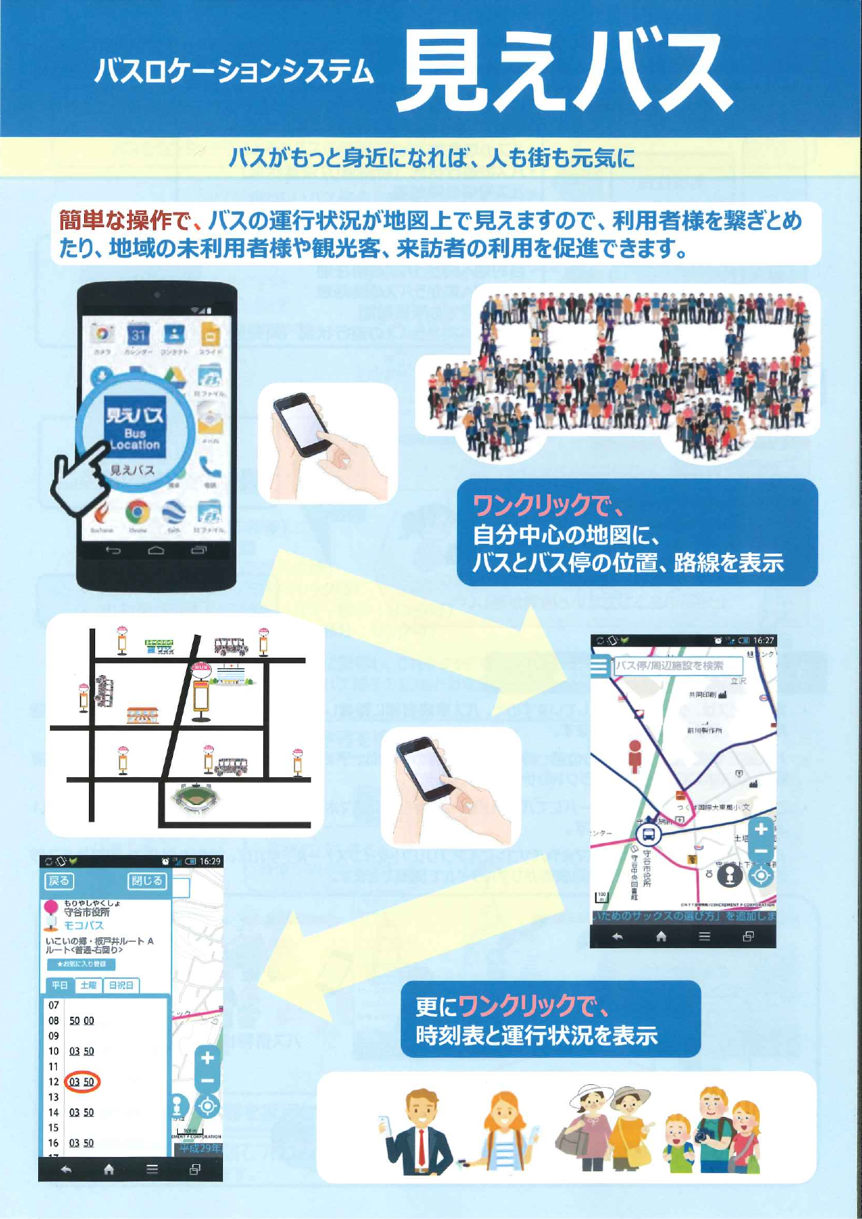 簡単な操作で、バスの運行状況が地図上で見えますので、 利用者様を繋ぎとめたり、地域の未利用者様や観光客、来訪者の利用を促進できます。 ワンクリックで、自分中心の地図に、バスとバス停の位置、路線を表示し、更にワンクリックで、時刻表と運行状況を表示します...