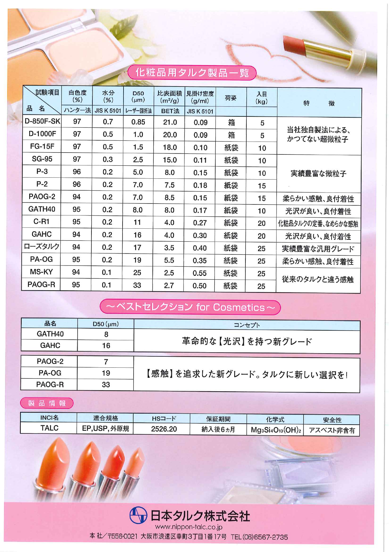 「日本最大級のタルク製造メーカー」日本タルク株式会社です。