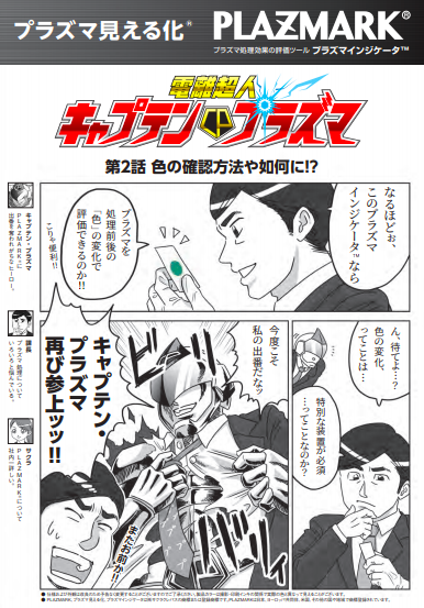 プラズマ処理効果の見える化をわかりやすく漫画でご紹介 PLAZMARK(R)は、プラズマ中のラジカルやイオンで変色する色材を用いた評価ツールです。 プラズマの処理強度や処理時間に応じて連続的に変色しますので、プラズマ処理効果を「色で見える化」...