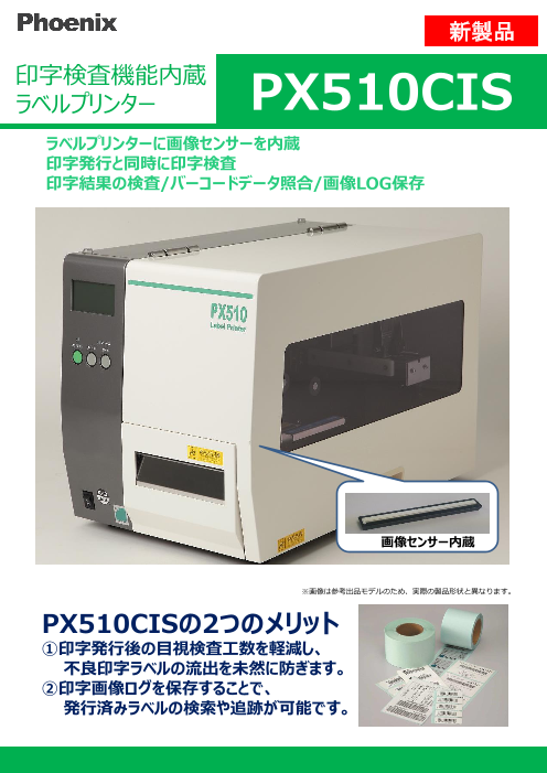 ◆印字発行と同時に印字検査 印字結果の検査/バーコードデータ照合/画像LOG保存 ◆印字発行後の目視検査工数を軽減し、不良印字ラベルの流出を未然に防ぎます。 ◆印字画像ログを保存することで、発行済みラベルの検索や追跡が可能です。 ...
