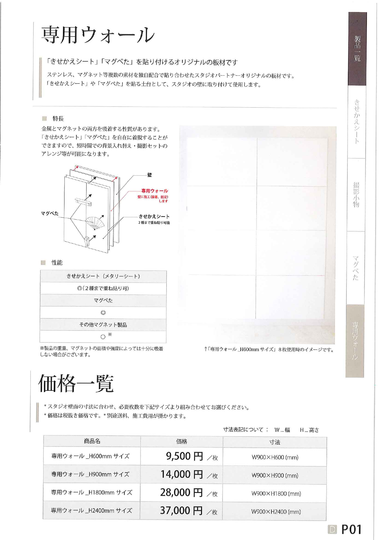 ステンレス、マグネット等複数の素材を独自配合で貼り合わせたスタジオパートナーオリジナルの板材です。 「きせかえシート」や「マグペた」を貼る土台として、スタジオの壁に取り付けて使用します。 「きせかえシート」や「マグペた」を自在に着脱することができ...