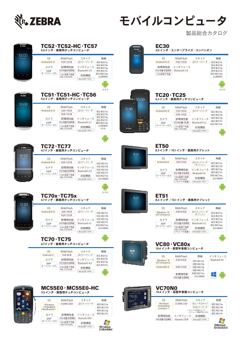・ハンドヘルドコンピュータ 施設内でも、外回りや出張中でも、効率性、生産性、そして顧客サービスレベルの向上に貢献する、Zebraのハンドヘルドモバイルコンピュータ。 ・ウェアラブルコンピュータ 使い勝手がよく耐久性の高いウェアラブルコンピュータ...