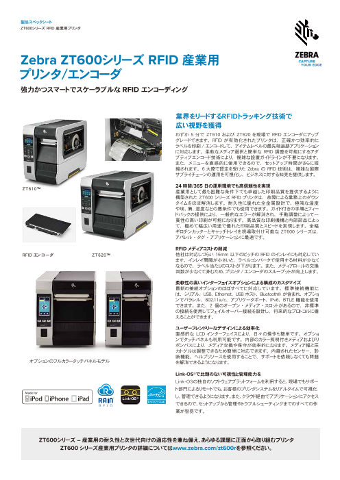 ゼブラのRFIDプリンタZT610RFID/ZT620RFIDは高度な機能を備えた最...