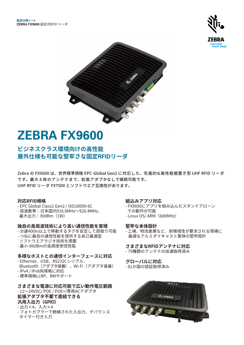 Zebra FX9600は 最大8枚までRFIDアンテナ接続が可能な高性能RFIDリ...