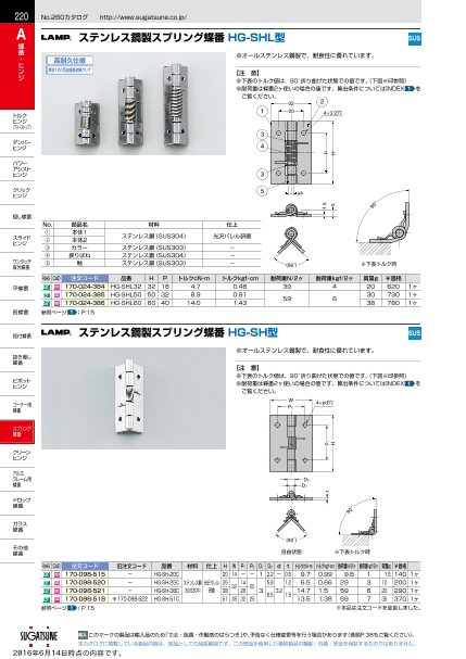 <掲載製品の中でもユニークな商品をご紹介!> ステンレス鋼製 スプリング蝶番 HG-SHL型 ●100万回の開閉試験(弊社基準)をクリア。高耐久なスプリング蝶番です。 ●オールステンレス鋼製で、耐食性に優れています。 詳しくはお問い合...