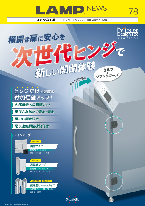 ヒンジだけで横開き扉のバタン音/口開きを防ぎます!