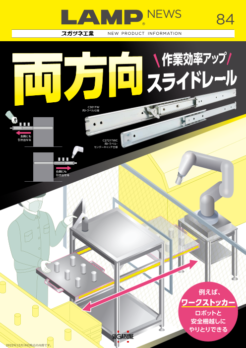 両方向スライドレールが活躍する場面 CASE.1【ロボットと協業するワークストッカー】 ・安全柵越しにワークの受け渡しができる。 ・ロボットと人の作業スペースを分けやすい。 CASE.2【医療カートに】 狭い病室で動線が確保できなくても...