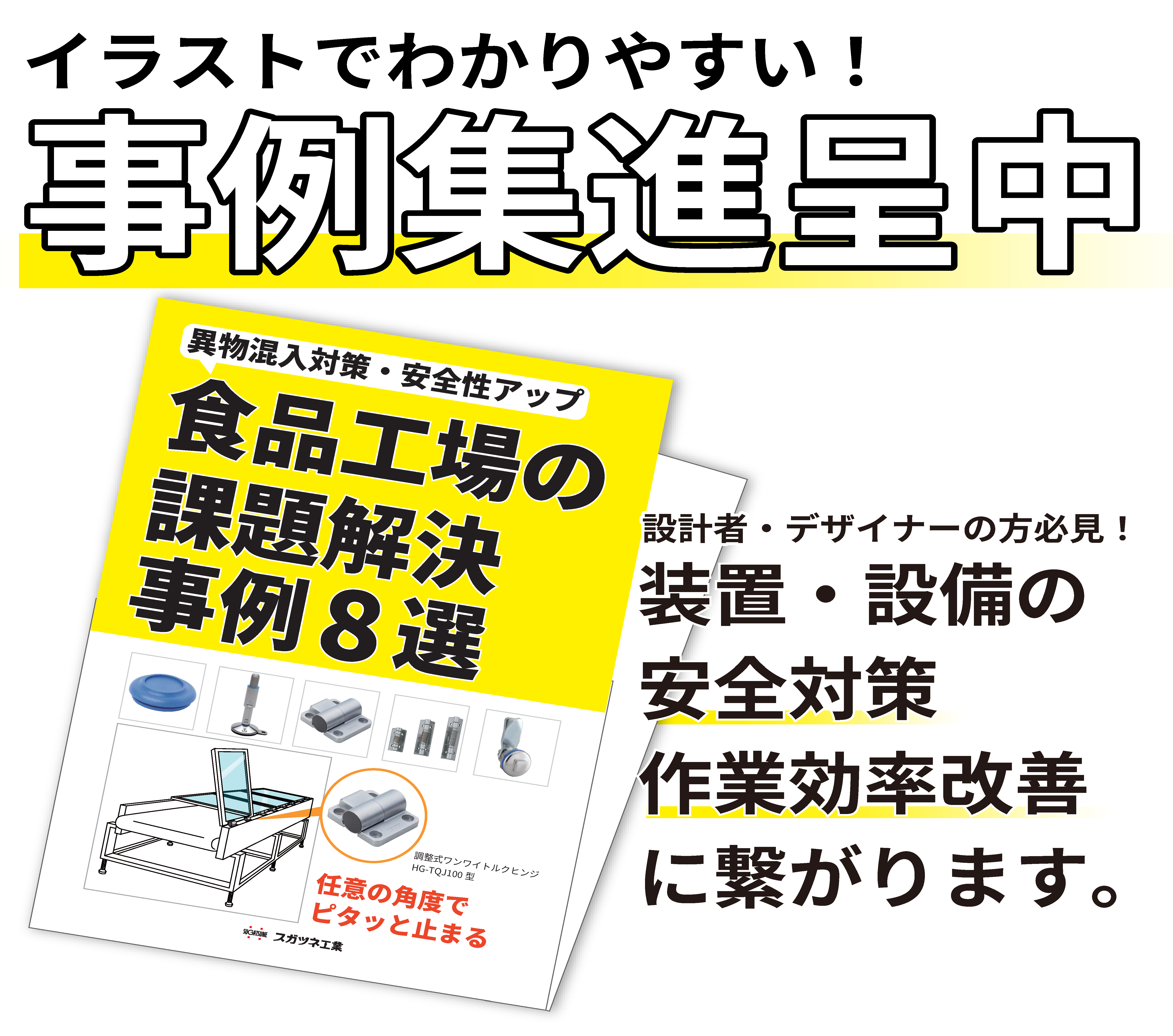 この冊子は、お客様の課題に対してスガツネ工業の機構部品で解決した事例をご紹介しております。 こんな課題をお持ちの方におすすめ!▼ ・設備部品の欠片が食品製造ラインに混入するのを防ぎたい ・設備洗浄に時間がかかる ・ハンドル取付時の溶接が手間 ...