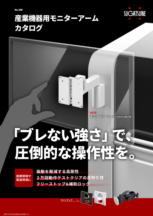 KA-T100S50-W型/P型 トルク&補助ロック付 タッチパネル対応 こんなお悩みをお持ちの方▼ ・タッチパネルの操作がブレる ・モニターが垂れ下がる ・角度調整/取り付け作業が大変 そんな方々、スガツネのモニターアームは、 独自...