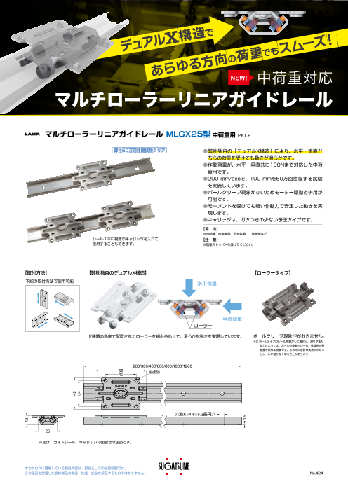 ●当社独自の「デュアルX構造」により、水平・垂直どちらの荷重を受けても動きが滑らかです。 ●作動荷重が、水平・垂直共に120Nまで対応した中荷重用です。 ●200 mm/secで、100 mmを50万回往復する試験を実施しています。 ●ボールクリー...