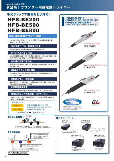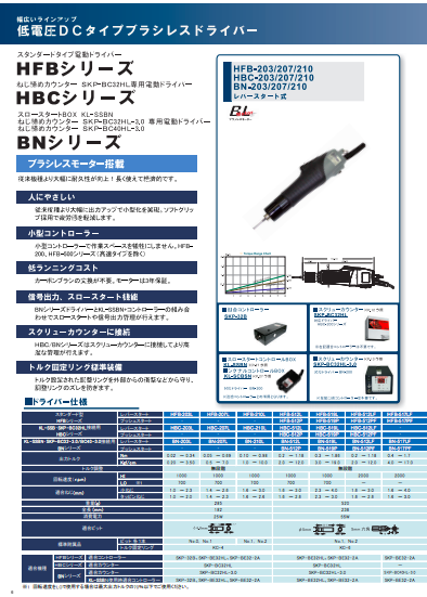 【掲載製品】 ◆スタンダードタイプ電動ドライバー:HFBシリーズ ◆ねじ締めカウンター SKP-BC32HL専用電動ドライバー:HBCシリーズ ◆スロースタートBOX KL-SSBN ◆ねじ締めカウンター SKP-BC32HL-3.0 専用電動ド...