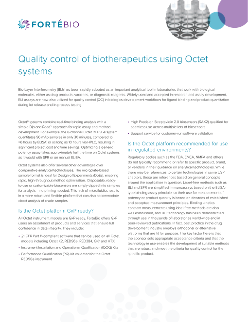 Octetシステムは、アッセイ速度、アッセイ設計の多様性、および並 列で独立したバイ...