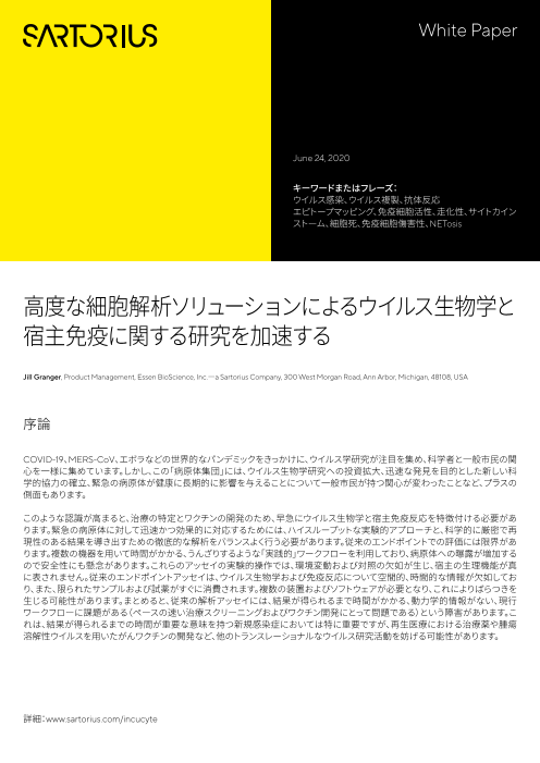ウイルス感染、ウイルス複製、抗体反応 エピトープマッピング、免疫細胞活性、走化性、サ...