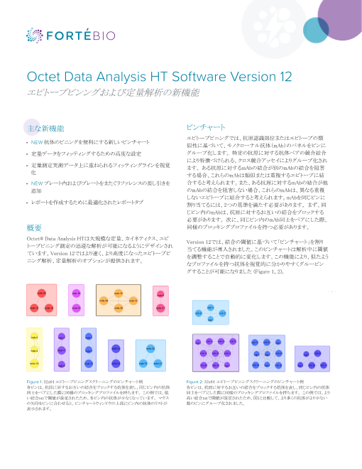 Octet Data Analysis HTは大規模な定量、カイネティクス、エピトープビニング測定の迅速な解析が可能になるようにデザインされています。Version 12ではより速く、より高度になったエピトープビニング解析、定量解析のオプションが提供され...