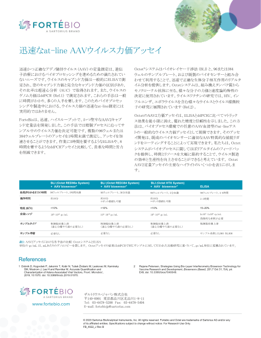 迅速かつ正確なアデノ随伴ウイルス (AAV) の定量測定は、遺伝子治療におけるバイオプロセッシングを進めるための満たされていないニーズです。 ウイルスのキャプシド力価は一般的にELISAで測定され、空のキャプシド力価と完全なキャプシド力価の区別があ...