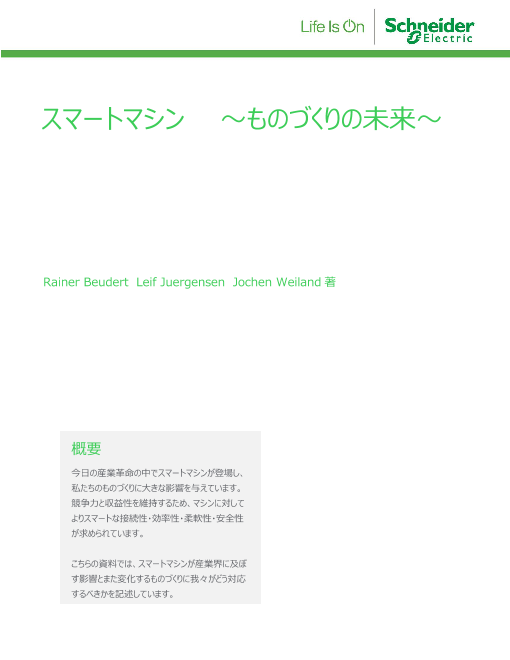 今日の産業革命の中でスマートマシンが登場し、私たちのものづくりに大きな影響を与えています。 競争力と収益性を維持するため、マシンに対してよりスマートな接続性・効率性・柔軟性・安全性が 求められています。 本ホワイトペーパーでは、スマートマシンが産業界...