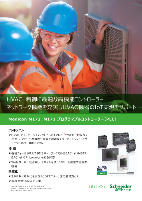 冷暖房、換気、空調関連機器=HVACの制御に最適な高機能コントローラー。 ネットワーク機能を充実しHVAC機器のIoT実現をサポートします。 【特長1:フレキシブル】 HVACアプリケーションに特化したTVDAやAFBを数多く用意しており、小規...