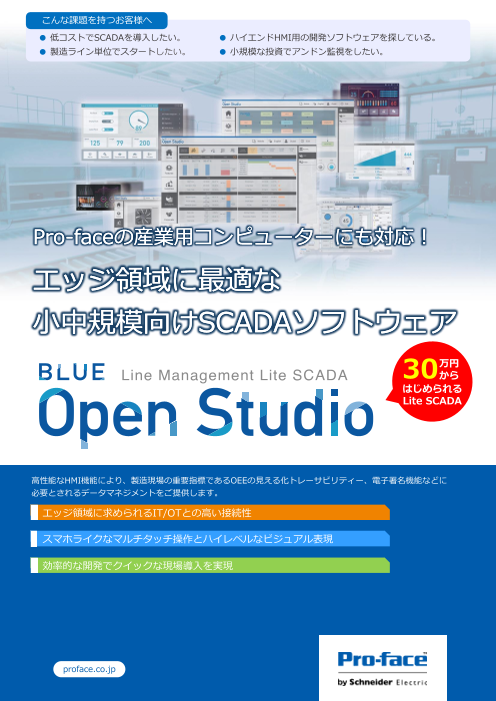 Lite SCADA/高機能HMIソフトウェア「BLUE Open Studio」は、エッジ領域に求められる高い接続性と表現力を備えたエッジデバイス(Pro-face HMIも対応)に最適な小中規模向けSCADAソフトウェアです。OT・IT両サイドとの高...