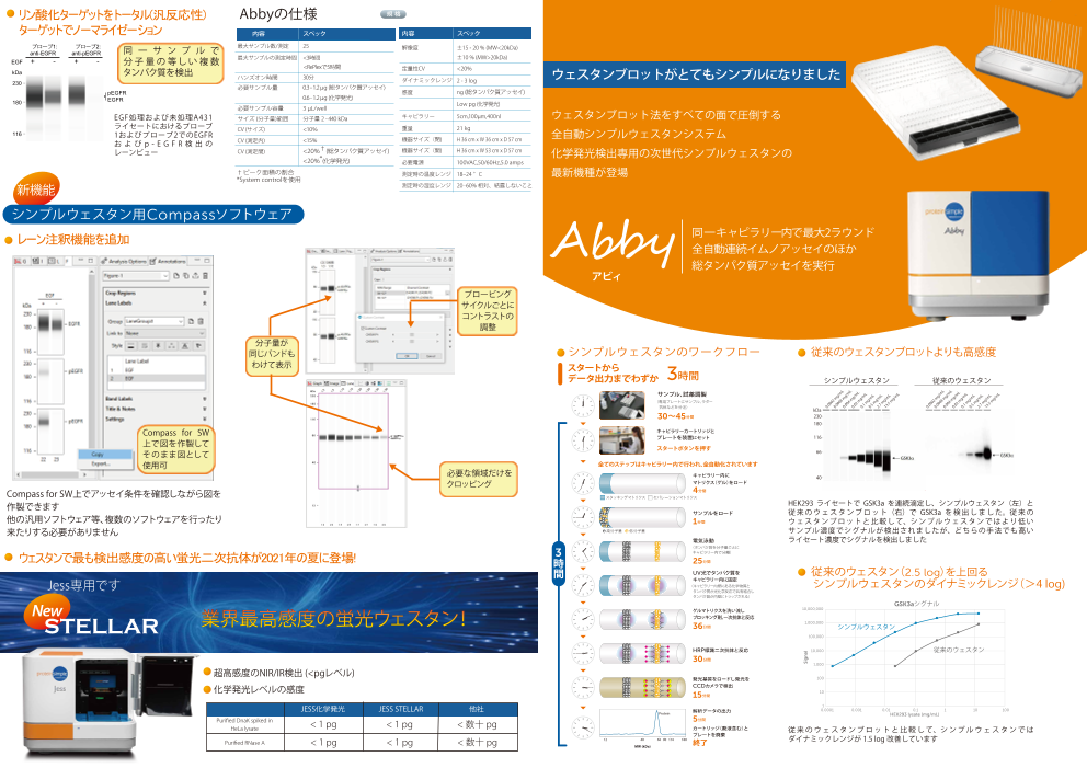 キャピラリーを用いた全自動ウェスタである、シンプルウェスタンは従来のウェスタンブロット法をすべての面で圧倒する新しい技術です。 化学発光検出 シンプルウェスタン に、RePlex (ストリッピング & リプロービング)も可能な新機種 Abby(...