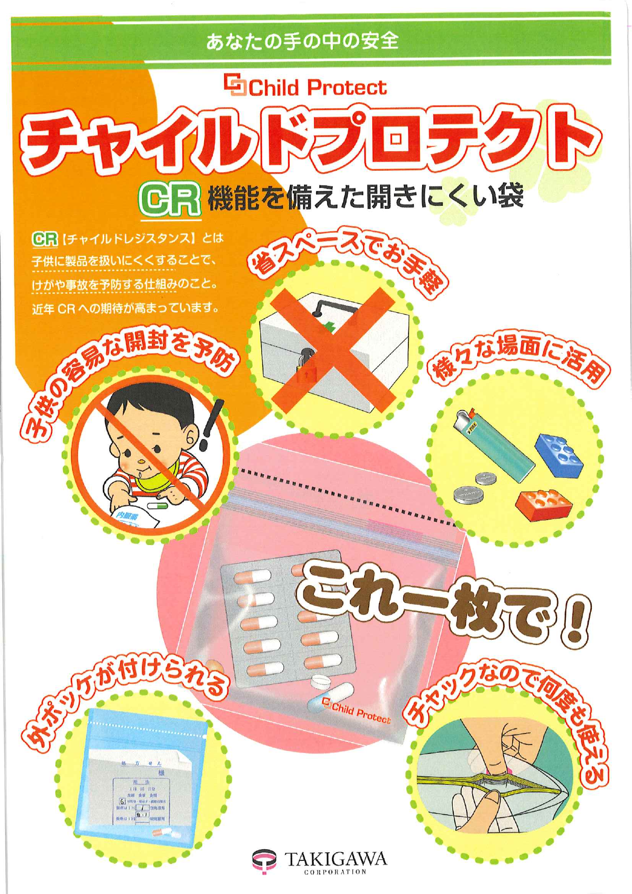 CR(チャイルドレジスタンス)とは子供に製品を扱いにくくすることで、けがや事故を予防...
